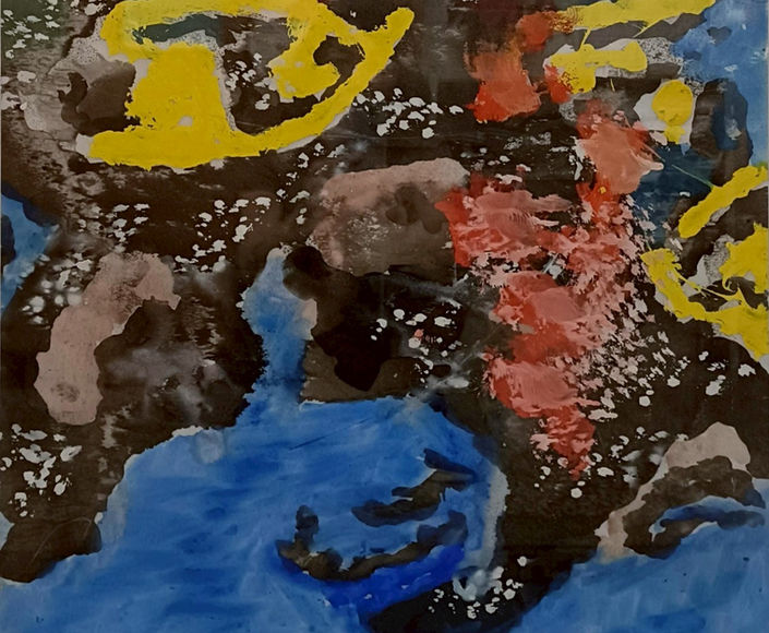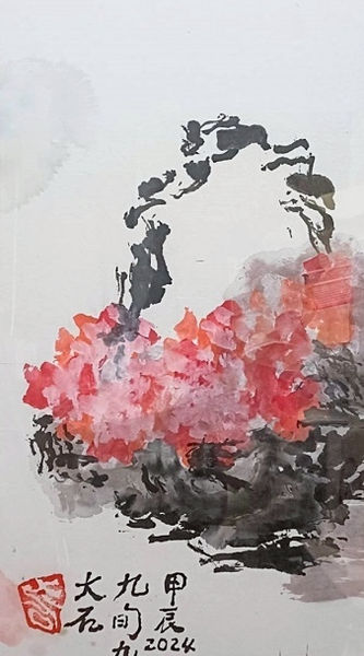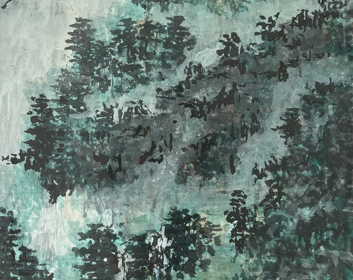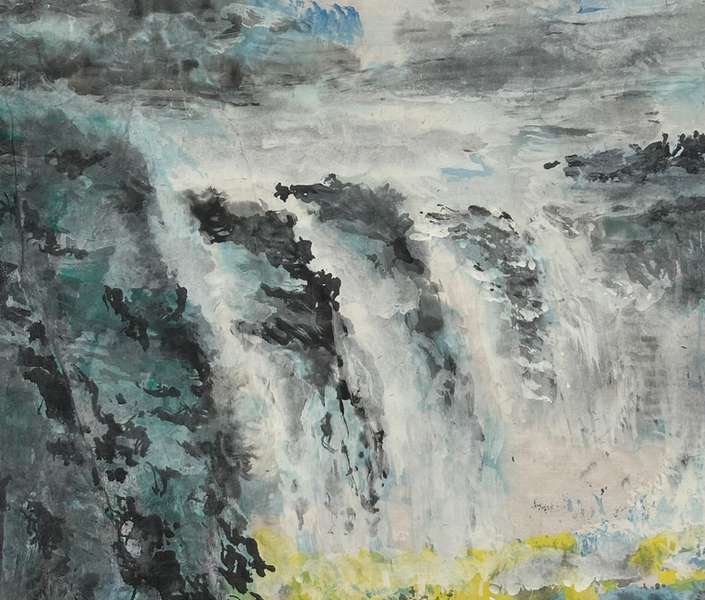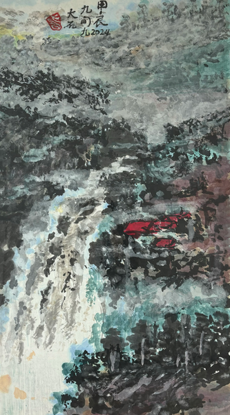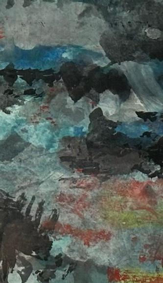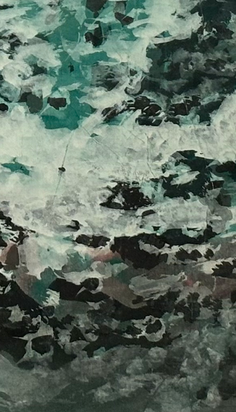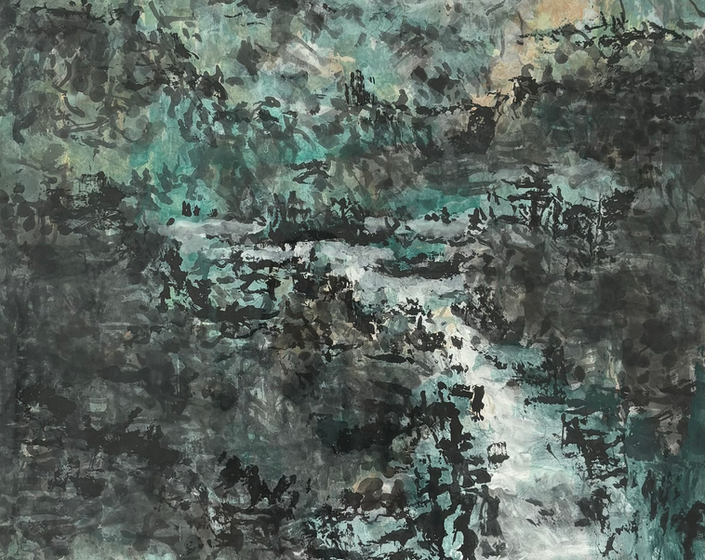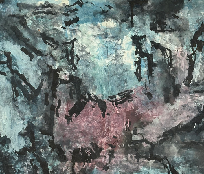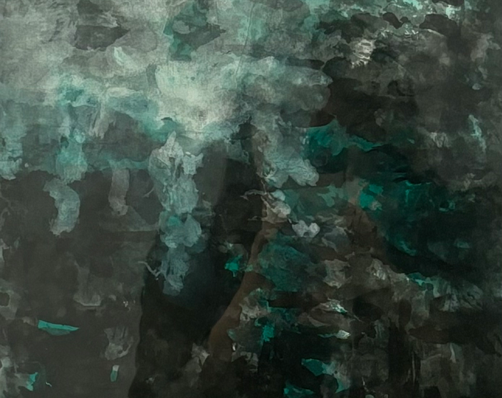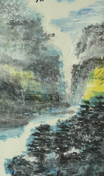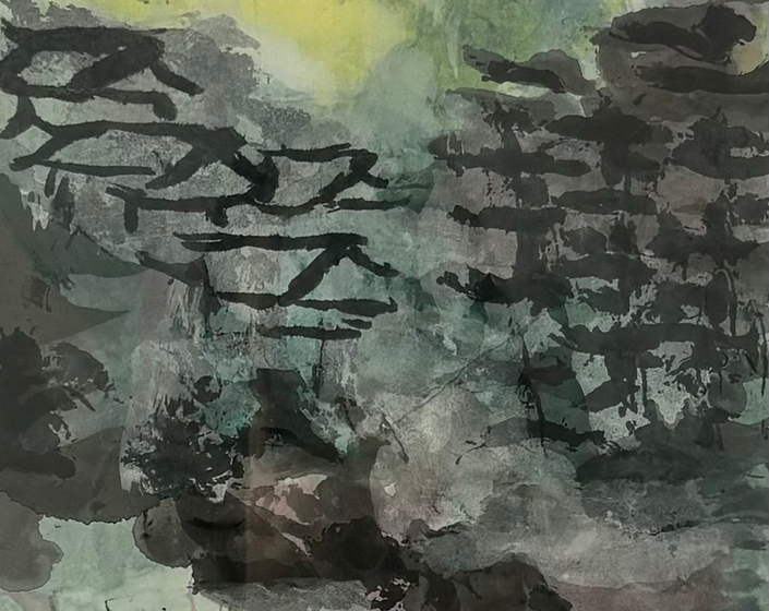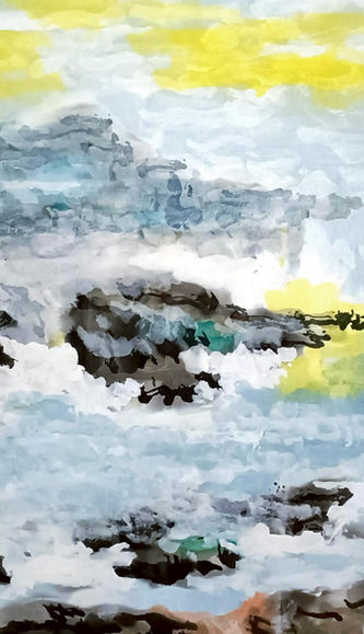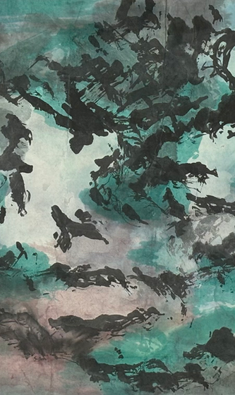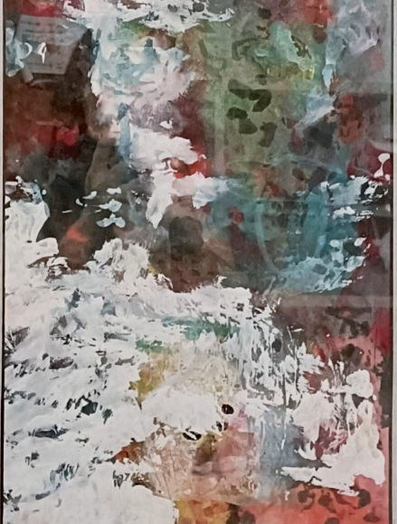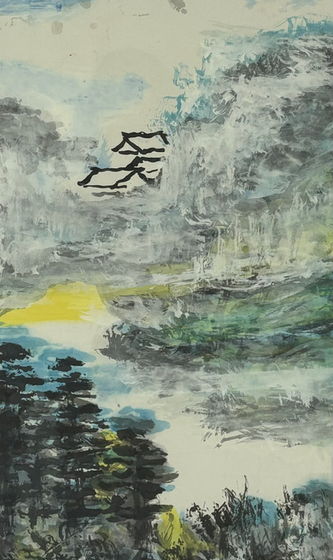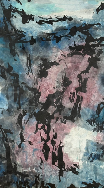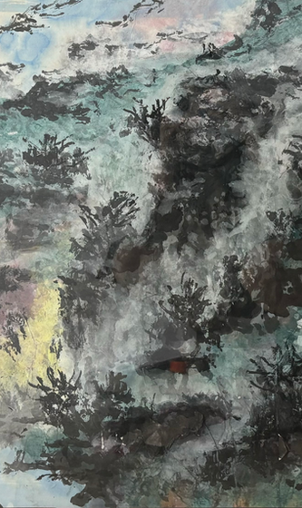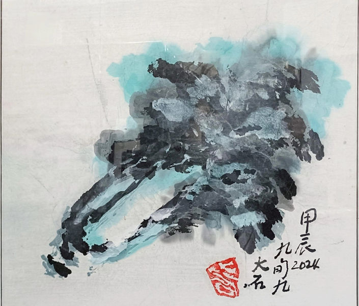 自此展開無師自通的素人「棉棒塗鴉」之旅,時而高山流水,時而抽象意境,迄已千幅。